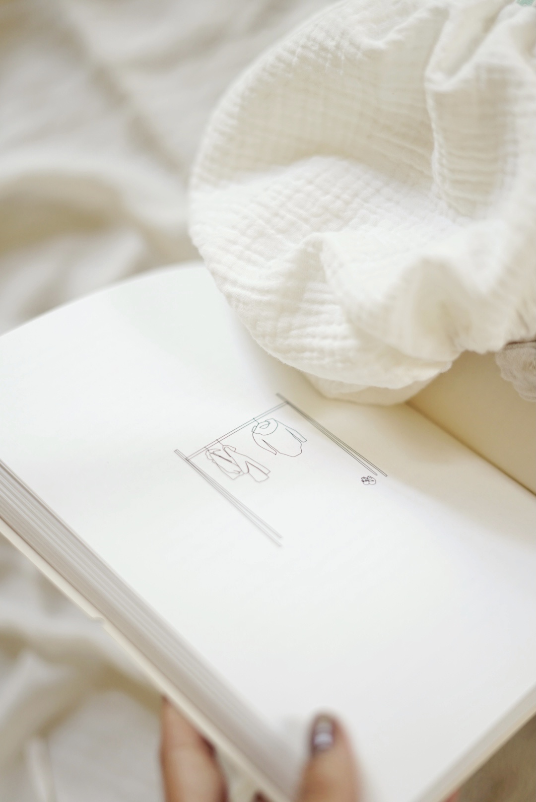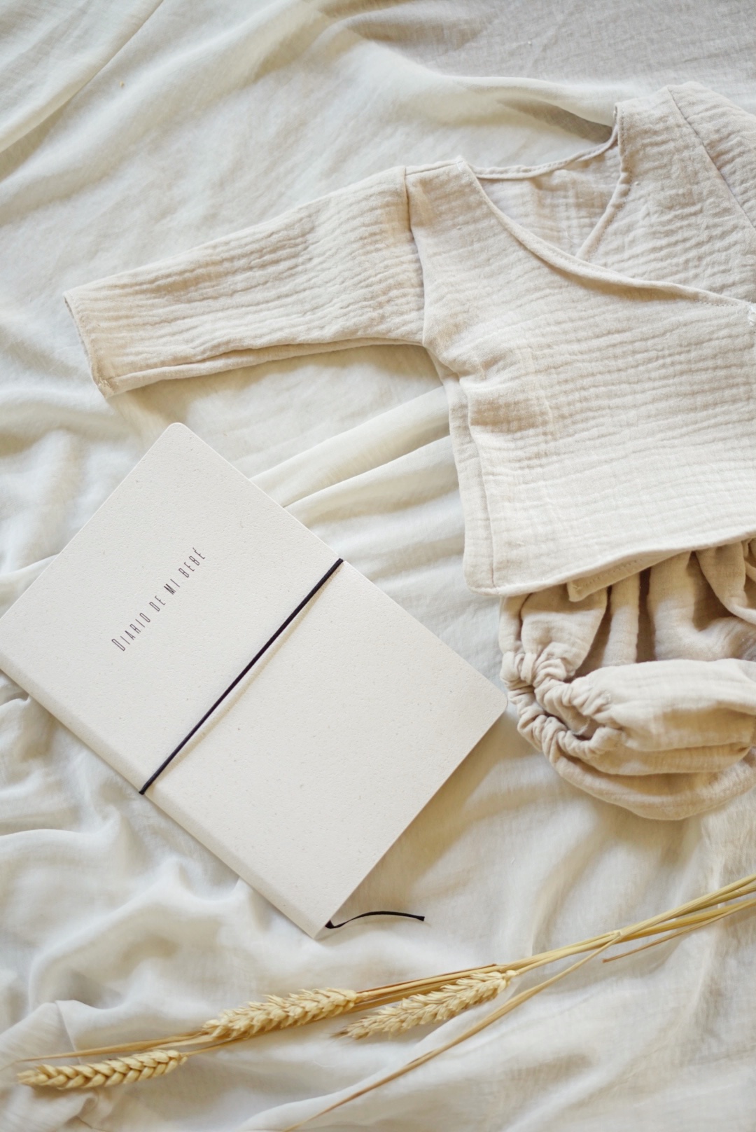 El set está compuesto por un conjunto de primera puesta y el Diario de mi bebé. El conjunto de primera está compuesto por dos piezas y está hecho a mano por Nonotú en bambula 100% de algodón orgánico, y está disponible en tres modelos diferentes.